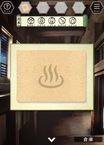 アイテム欄から温泉マークの紙を使用し、文字を確認します。
