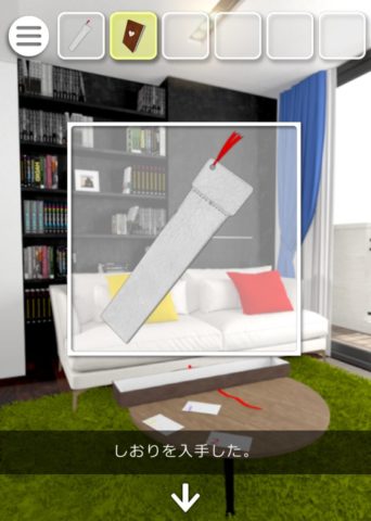 アイテム欄からしおりを選択し、ハサミを使用して切ります。