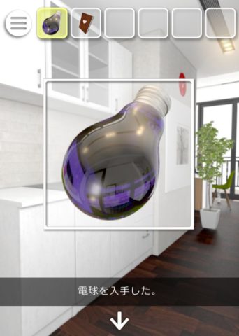 アイテム欄の電球をセットし、壁のスイッチをタップしてライトを点けます。