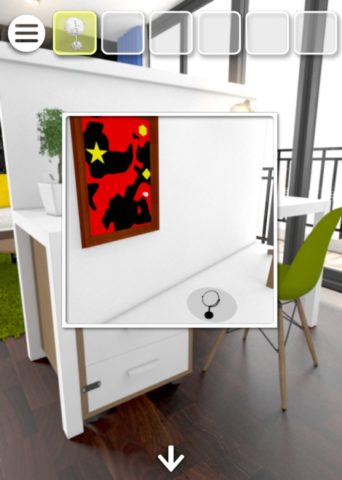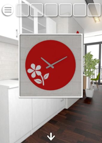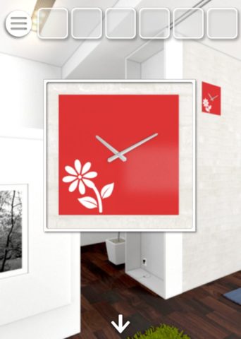 壁の赤い時計をタップし、拡大して花の絵を確認します。