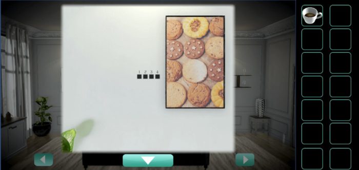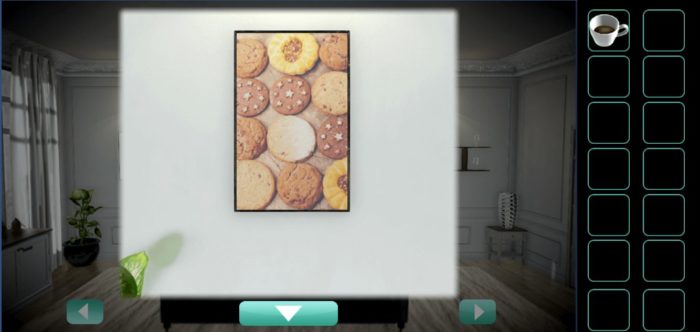 左の壁にかかっている額縁をタップして拡大し、確認します。