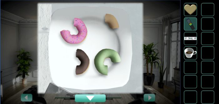 テーブルの左上にあるドーナツのお皿をタップして拡大し、ドーナツの向きを確認します。