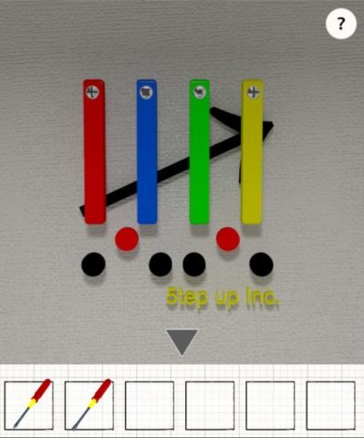 企業ロゴの赤い棒に「プラスドライバー」を使って「赤い棒」を手に入れます。