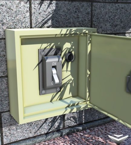 入手した鍵を使用した後、タップして電源BOXを開けます。
