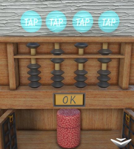 ズームアウトし、壁のそろばんをタップして「算盤見本」を確認します。