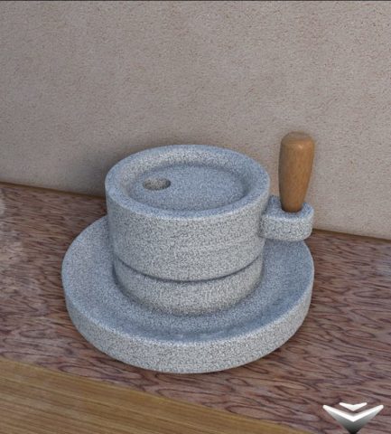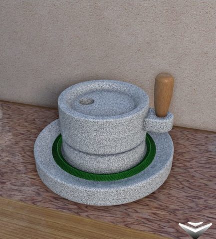 茶筒を石臼の穴に使用した後、タップして石臼を回します。