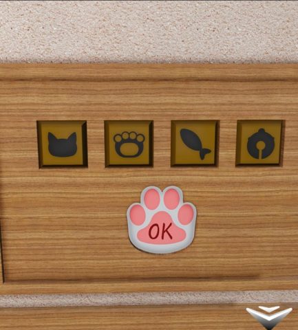 「猫の顔→魚→猫の手→鈴→猫の手」の順にボタンを押し、OKをタップします。