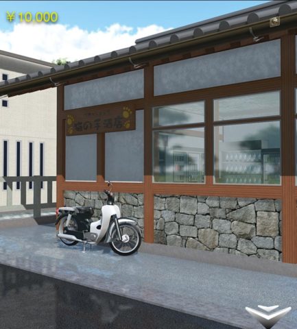 ズームアウトして道路に猫がいる画面に移動し、バイクをタップして拡大します。