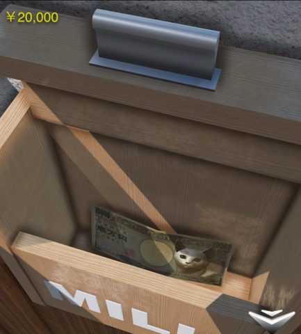 和菓子屋から脱出した後、風で飛ばされた猫のお金を探します。