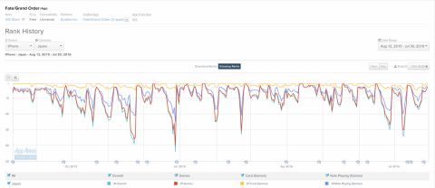 この記事ではセールスランキングの上位の常連となった「Fate/Grand Order」(FGO)の1周年の軌跡を、ダウンロード、セールスの観点でまとめています。