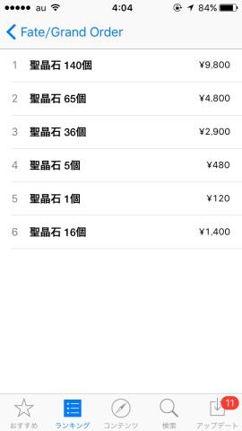 FGOはAppStoreのセールスランキングで複数回1位を獲得しています。