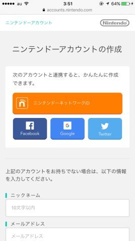 ニンテンドーアカウントを持っていない場合でも新規登録が出来ます。