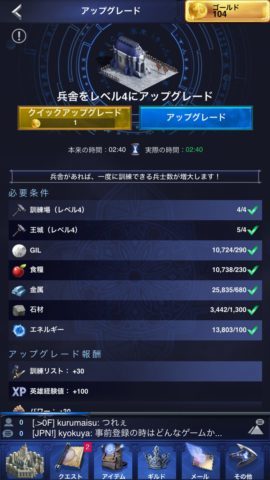 施設のレベルは他の施設のレベルがキャップになっているので、条件を確認しながらアップグレードしましょう。