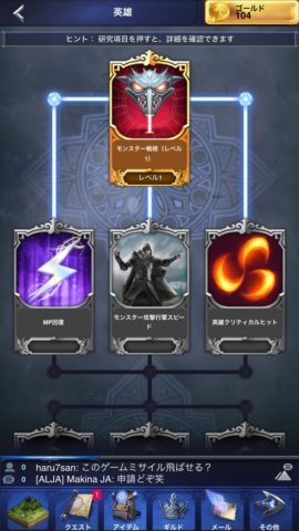 モンスターには6段階のレべルがあり、研究の英雄でそのレベルのアビリティを習得しないと挑むことができません。