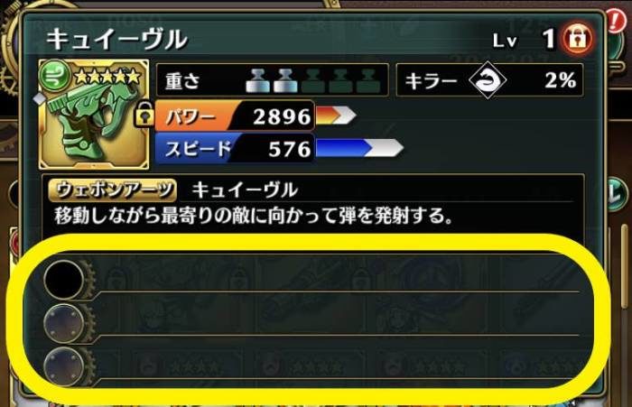 | パワーアップ | 500 | 1000 | 1500 | 2000 | 3000 |
