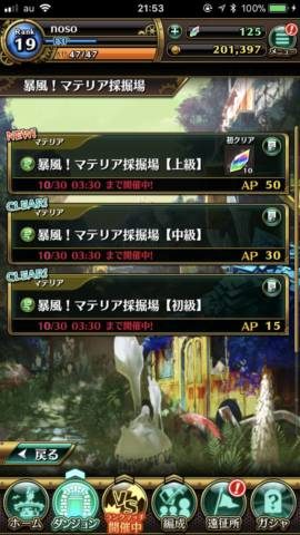 マテリアはイベントダンジョンで曜日ごとに開催されるマテリア採掘場で入手することができます。