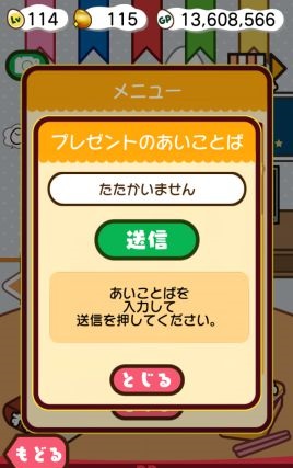 メニューの「プレゼントのあいことば」に、たたかいませんと入力しましょう^^