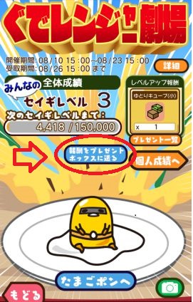 セイギレベルが上がると、イベント限定のポンチケットや便利なアイテムがもらえたり、ひみつ基地みたいな形のたまごポンにぐでたまが追加されていったりしちゃいます♪