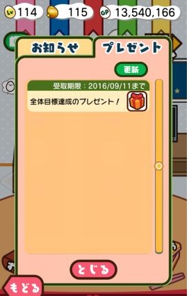 送られたプレゼントは、おへや右側の「お知らせ/プレゼント」にて、プレゼントのタブから受け取れます^^