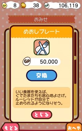 だいどころ用品の「めおしプレート」を購入するとルーレットが自分で止められるようになるので、優先して買っておこう!