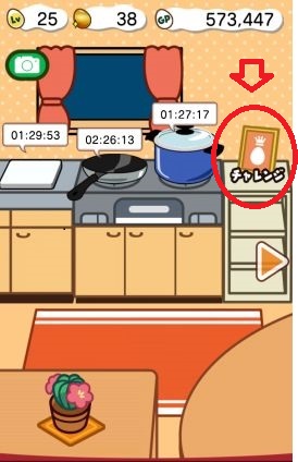 だいどころにある「チャレンジ」をタップすると、毎日更新される「デイリーチャレンジ」や、あそびながら達成していく「チャレンジ」の2種類があります。