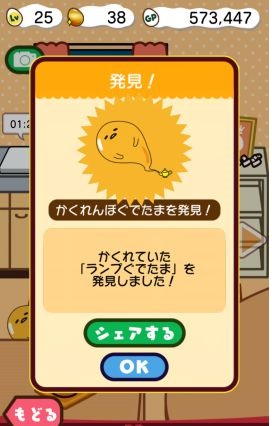 かくれんぼぐでたまを見つけるとGPなどのプレゼントがもらえるので、頑張って探してみよう!