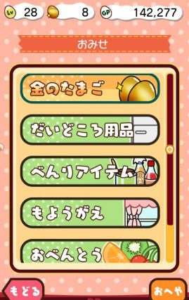 おみせでは、「だいどころ用品」や「べんりアイテム」などを購入する事ができます!