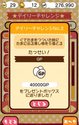毎日チャレンジしてGPやたまごを集めて、たくさんぐでたまをGETしていこう!