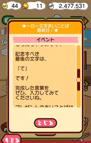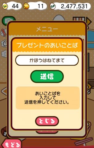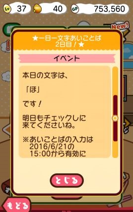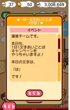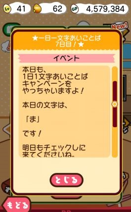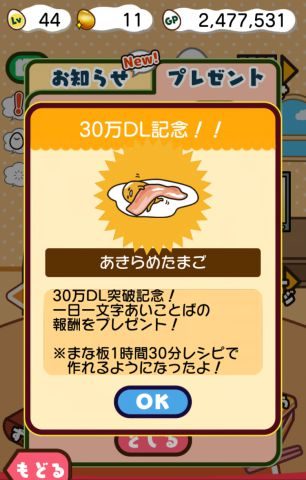 あいことばを送信すると30万DL記念の「あきらめたまご」がもらえました^^