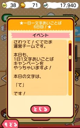 【ぐでたまS】「1日1文字あいことば」キャンペーン!毎日更新!