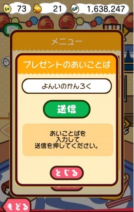 MENUの「プレゼントのあいことば」から、あいことばを入力しよう♪