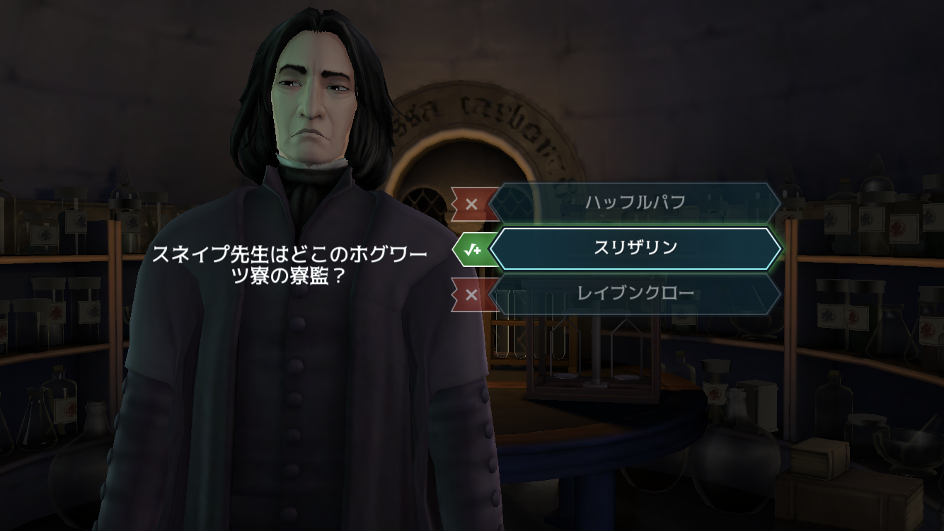 | スネイプ先生はどこのホグワーツ寮の寮監? | スリザリン |