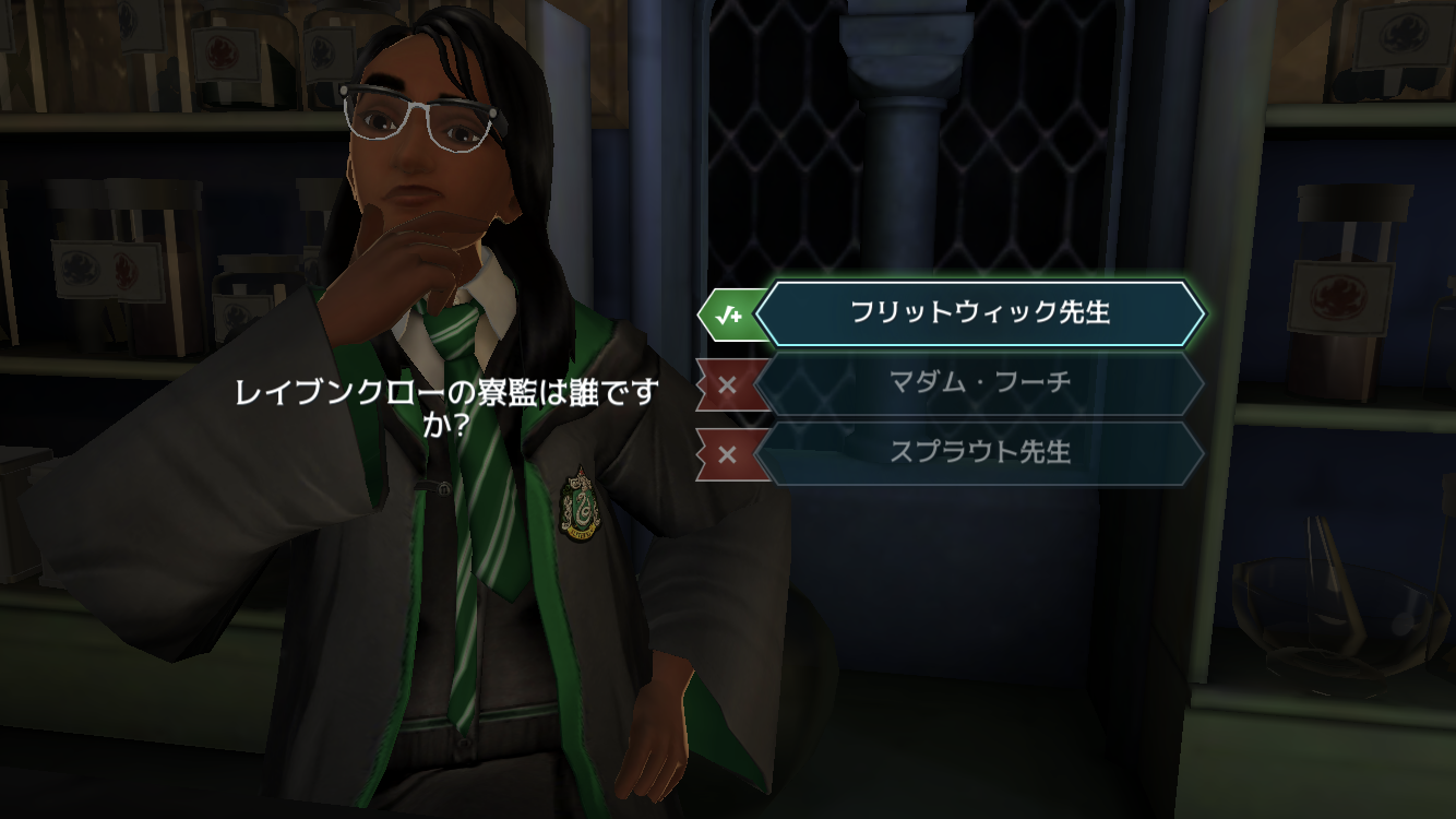 | レイブンクローの寮監は誰ですか? | フリットウィック先生 |