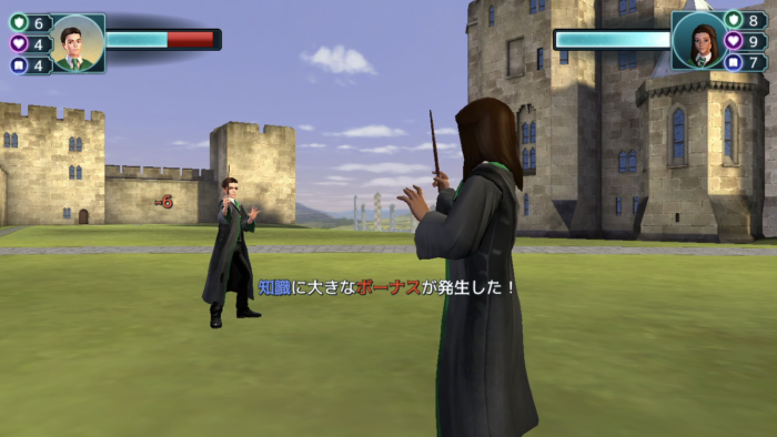 「攻撃的になる」>「こそこそする」>「守りに徹する」>「攻撃的になる」の3つ巴のスタンスの選択に成功すると、魔法薬学や呪文学で習得した魔法で相手を攻撃したり、自分の体力を回復することができます。