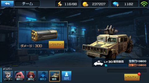 車両ステージをクリアできなくて足止めされたら、車両のレベルアップを行いましょう。