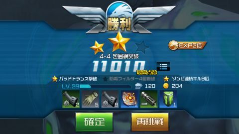 手元では一般ステージの「4-1 ゾンビ」、「4-2 切迫した時間」、「4-3 道路疾走」、「4-4 包囲網突破」でのドロップを確認しています。