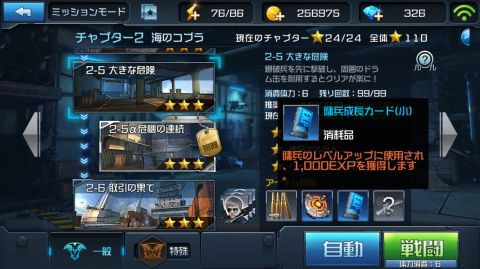 3つ星評価でクリアしているミッションは「クリアチケット」を使用して自動戦闘が可能で、プレイすることなくクリアしたことに出来ます。