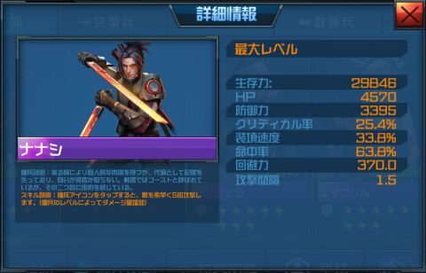 ナナシは1/19の更新で追加された傭兵で、「突撃銃」を装備することが出来ます。