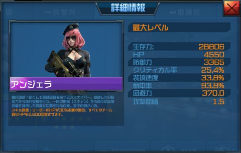 アンジェラもチュートリアルで入手できる傭兵で、「狙撃銃」を装備することが出来ます。