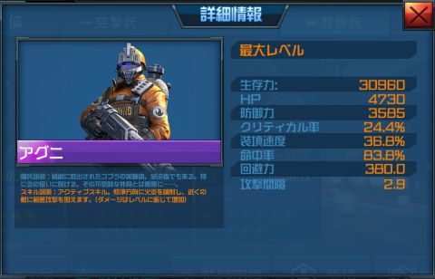 アグニはダイヤガチャで入手できる傭兵で、「散弾銃」を装備することが出来ます。