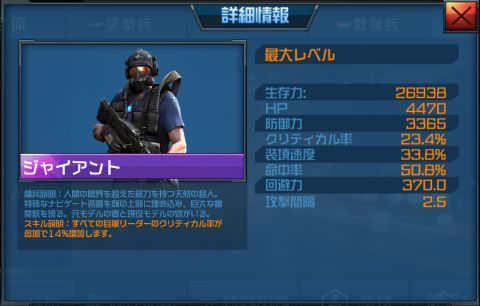 ライアンはダイヤガチャで入手できる傭兵で、「散弾銃」を装備することが出来ます。
