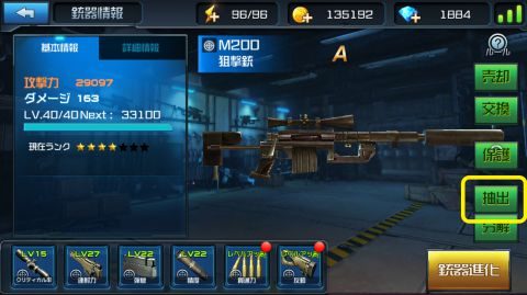 抽出はレベル2以上の銃器(武器)に対して「銃器情報」の画面から行うことが出来ます。