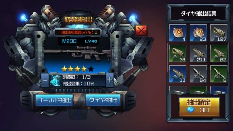抽出を行うと、その銃器はレベル1に戻り、「銃器成長カード」や部品のレベルアップ素材を入手できるので、新しく手に入れた銃器に変えたい場合に有効です。