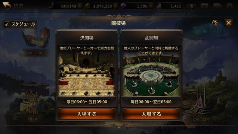 闘技場は挑戦にある対戦(PvP)のコンテンツです。