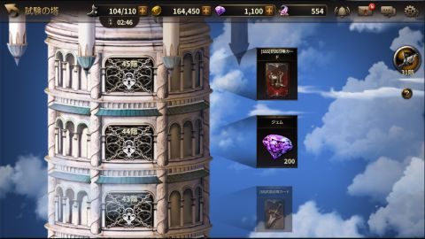 試練の塔では階層ごとに報酬が用意されています。