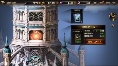 試練の塔はキャラクターレベルが6になると解放されます。