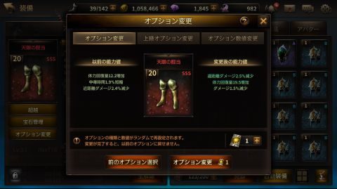 ▲オプション変更カードかジェムでオプションを再抽選できます。