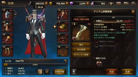 装備にはキャラクターのステータスを上げる様々なオプションが付きます。