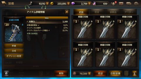手っ取り早く強くなるのはSSS装備ですが、装備の詳細情報にも注意しましょう。