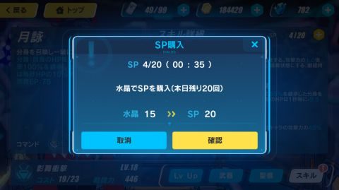 SPは時間経過で勝手に回復するので、積極的にSPを使ってスキルのレベルをどんどん上げることをおすすめします。